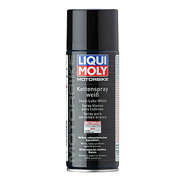 Before use, clean the chain with Motorbike Chain and Brake Cleaner (part no. 1602). Shake well before use. Then spray the chain. The lubricant attains its final consistency and adherence once the solvent has evaporated.