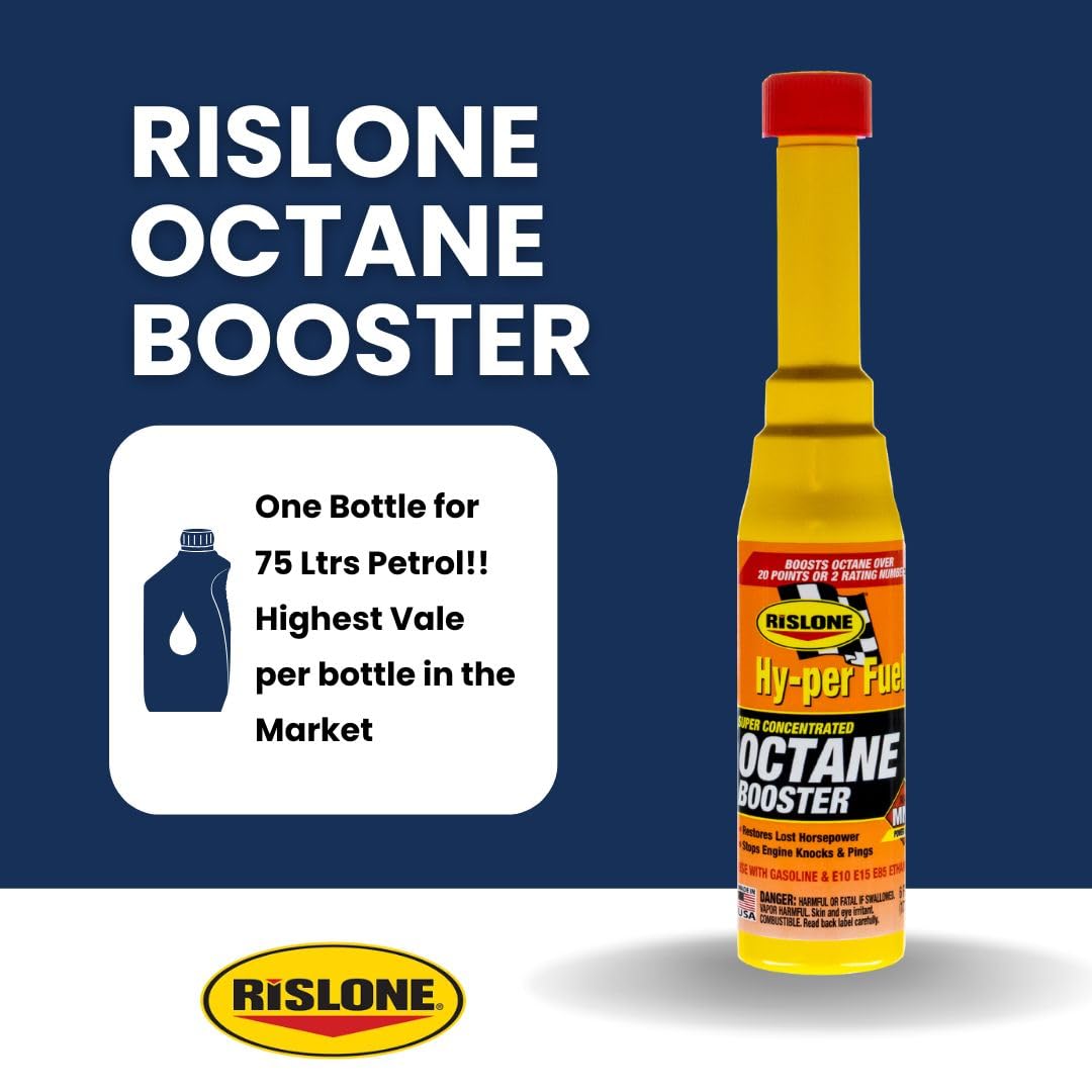 - Octane Booster: Rislone Hy-per Fuel Octane Booster increases your fuel's octane rating to prevent engine hesitation, knock and ping.