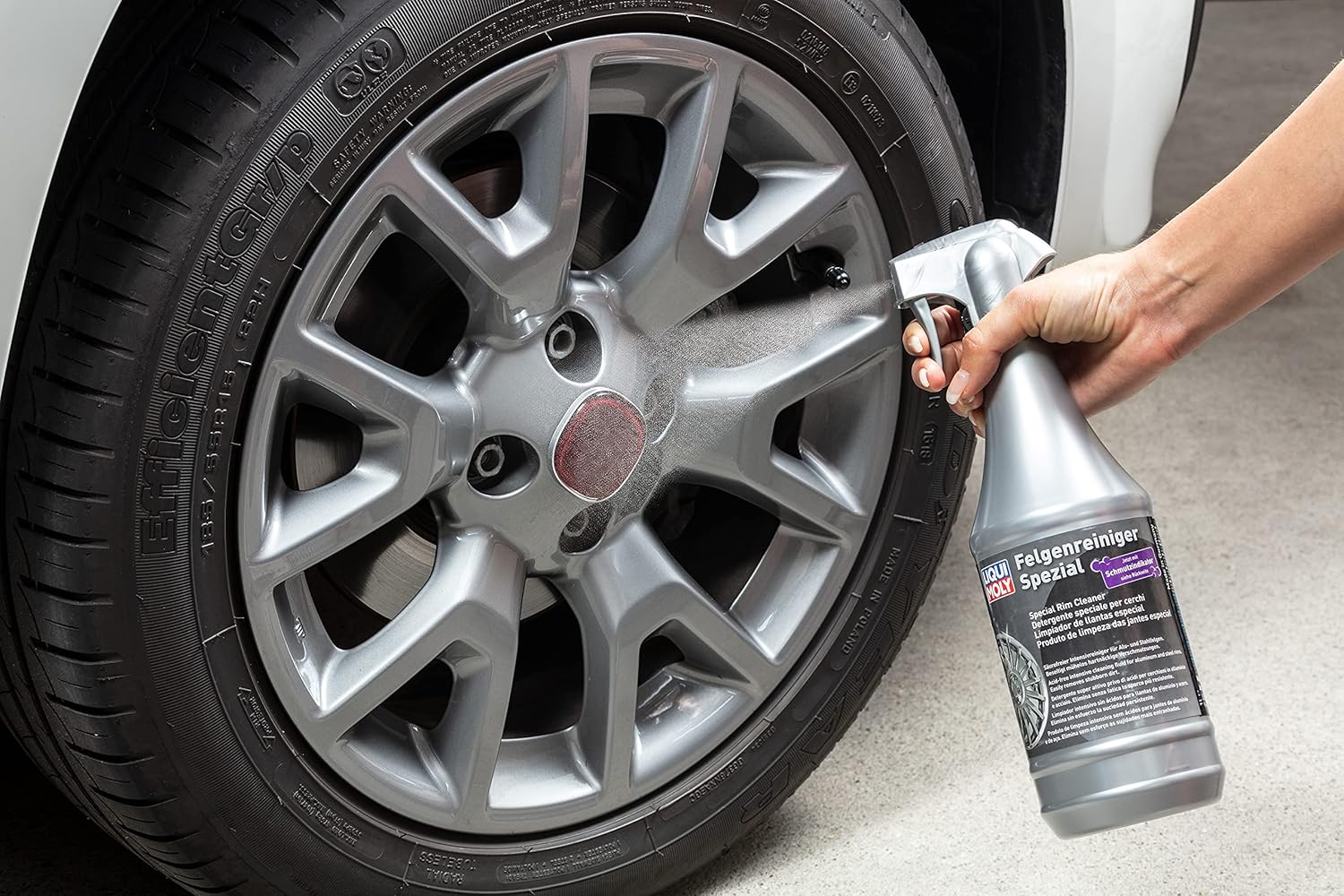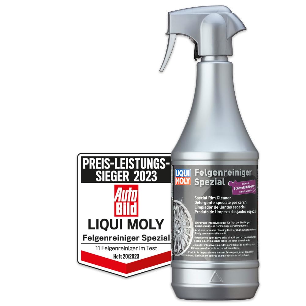 Special cleaner with practical dirt indicator. For intensive and gentle cleaning of aluminum and steel rims. Easily removes brake abrasion as well as other dirt. Reduces the amount of stubborn dirt that returns and, when used regularly, guarantees a radiant shine and long service life of the rims. pH neutral to the skin.